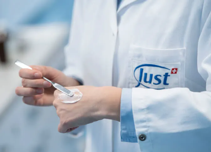 Valuable raw materials in unique formulations are used to create distinctive JUST products which are manufactured at the highest technical level in our own production facilities in Walzenhausen. Gentle processing of the precious raw materials and the careful and sustainable use of resources and the environment are matters which are particularly dear to our hearts. The production of JUST products is GMP and ISO certified.